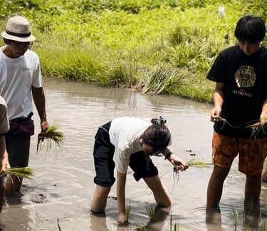 Begin your day exploring the Subak irrigation system as the symbol of Balinese harmony between people, nature, and spirit. Join local farmers as you plant rice by hand and stroll along scenic village paths surrounded by lush green fields and soothing breezes