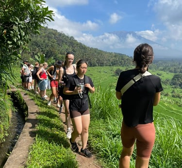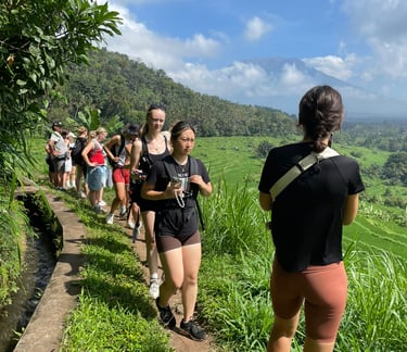 As you descend, explore the ngegadon area — the life source of Tenganan’s farming community. Discover how water flows through the subak system, how each planting season is determined.